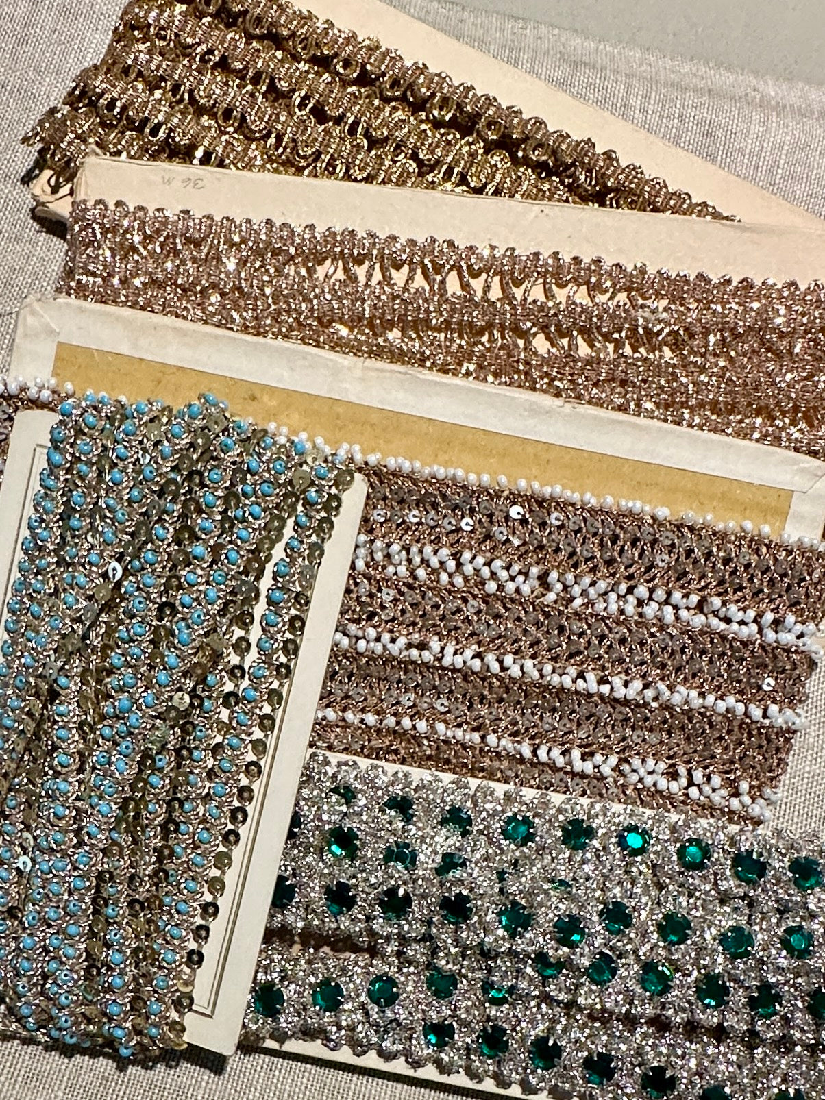 Trims like these are perfect for Christmas decorations. The yardage is limited.