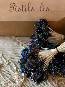 French Antique Millinery Buds with Iridescent Glitter in Black or White
