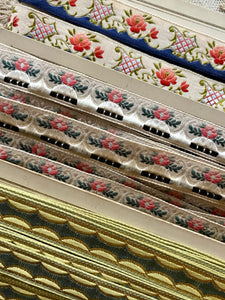 Vintage Passementerie carries the largest supply of antique and vintage ribbons and trims on the internet.  View our vast inventory of French ombre ribbon, grosgrain ribbon, french wired ribbon, french jacquard ribbon, ribbon embroidery supplies, rococo trim, ribbon for millinery flowers,  vintage floral ribbon and much more.